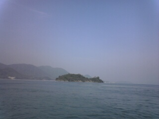ひょっこりひょうたん島:瀬戸内海をフェリーで渡っているときに、ひょうたん島が見えてきました。小学生の頃、テレビ番組でよく見たんだけど、ドンガバチョどうしてるのかな。