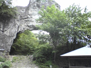 妙義山:僕の一人旅の最初は群馬県の妙義山ハイキングです。写真は奇岩で有名な妙義山の第4石門です。下仁田から妙義山でカニの横ばいと石門巡りの後、妙義神社で一息ついたら水車が見えてきました。水車の宿玉屋さんで部屋を案内されて山菜の佃煮とお茶で一休み、テーブルには「真っ直ぐに伸びるには、あなたの支えが必要です」と書かれた朝顔の絵が置いてありました。お風呂の湯には菖蒲が入っていて、十分浸かって汗をかいた体を洗って、さっぱりとしました。そして夕食。メニューは神前料理を中心に下仁田ネギを使ったすき焼きに岩魚の骨酒。熱い料理や冷たい料理が出される間の折り紙の「やっとこ」は一人旅の僕を元気にしてくれました。寝床には足の裏用のサロンパスまで用意してくれて、ぐっすり就寝できました(冬の時は湯たんぽで温もりを感じました)。朝、起きて部屋の扉を開けてみたら、なんとヤクルトと「おはようございます」と書かれた色紙が置かれていました。朝食は、菅原道真もよく食していたという小粥。女将さんが湯豆腐や山菜の天ぷらをよく饗してくれました。今では西洋タンポポに押されて貴重な日本原産のタンポポの天ぷらですよと説明してくれました。また、水車の宿玉屋さんで宿泊して妙義山をハイキング、下仁田の宿でこんにゃくのフルコースを頂いて、次の日には荒船山に登って帰宅するという逆コースも体験しました。